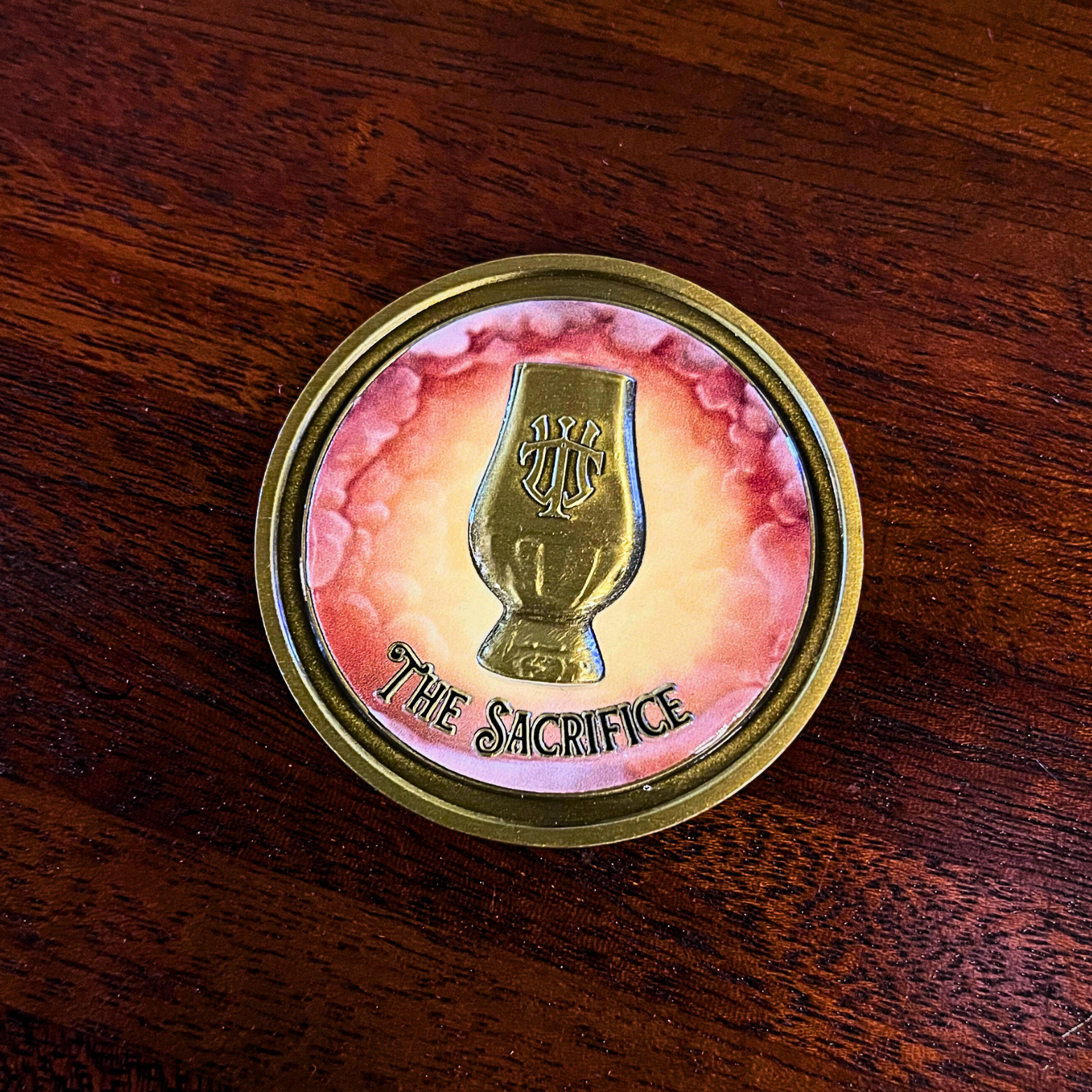 Forged for questionable quests and over-dramatic sips, this coin honors the Knights Who Say “Neat!” Flip it over to reveal “The Sacrifice”—a Glencairn raised to whatever whiskey spirit is listening. Carry it, flash it, or slap it down at the bar like a true Magnificent Bastard.”