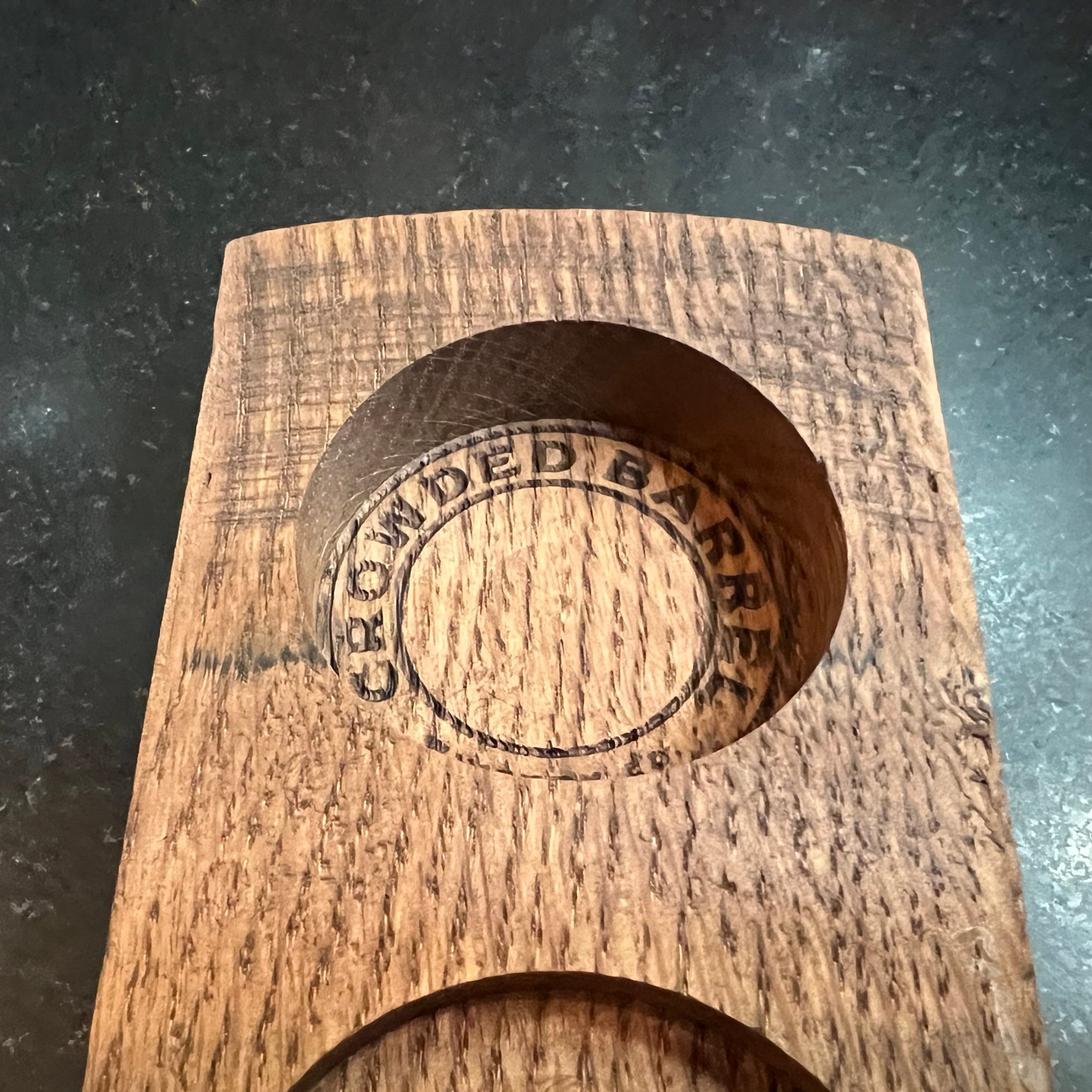 It’s cut from one of our used oak barrel staves at Crowded Barrel—wood that once held spirit through years of heat, pressure, patience, and time. The darkened penetration line running through the grain isn’t decoration. It’s the mark of where whiskey once lived, breathed, and changed.
